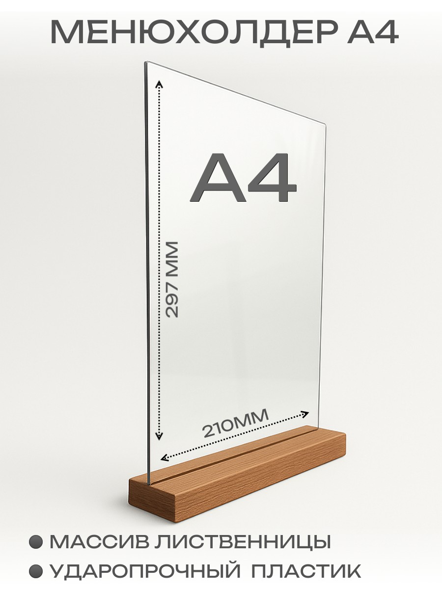 менюхолдер с деревянным основание А4 210х297 мм